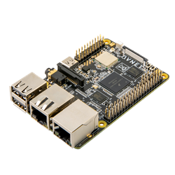 The MaaxBoard RT has a versatile set of peripheral interfaces enabling the rapid development of custom applications. This includes software enablement via drivers, and middleware with bare metal and/or FreeRTOS options, with Azure RTOS options coming soon. The platform offers several on-board peripherals including 256 MB of SDRAM and HyperFlash, two onboard Ethernet ports, a USB 2.0 port, MIPI-DSI, MIPI-CSI, Wi-Fi, Bluetooth, four on-board microphones and an audio jack. A Raspberry Pi HAT compatible expansion connector also provides interfaces for UART, SPI, l2C and GPIO.